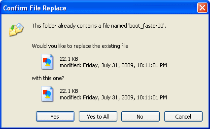 - The Confirm File Replace window doesn’t have a “No to All” button.